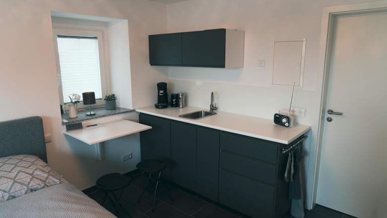 In der Ferienwohnung steht den Gästen eine voll ausgestattete Küchenzeile zur Verfügung, die unter anderem einen Kühlschrank bietet. Es besteht die Möglichkeit, Lebensmittel zur Unterkunft liefern zu lassen. Darüber hinaus gibt es Grillmöglichkeiten. Essenslieferungen in die Unterkunft sind möglich.