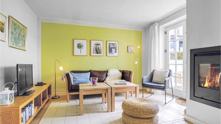 Die Ferienwohnung umfasst zwei Schlafzimmer, ein Wohnzimmer sowie eine Küche, die mit einem Kühlschrank und Geschirrspüler ausgestattet ist. Zur Unterhaltung stehen ein TV, ein DVD-Player und ein CD-Player zur Verfügung.