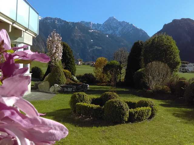 Das Apart Heim bietet ein geräumiges Apartment mit einem Schlafzimmer und einem kombinierten Wohnzimmer mit einer Küche, einem Essbereich und einem Schlafsofa. Das Apartment ist im modernen alpenländischen Stil eingerichtet und verfügt über Holzmöbel und -böden. Es gibt auch ein Badezimmer sowie eine Terrasse im Erdgeschoss und einen Balkon auf der oberen Etage, die beide einen herrlichen Blick auf die Zillertaler Alpen bieten.