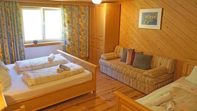 Die Ferienwohnung hat 3 Schlafzimmer, einen TV mit Satellitenkanälen, eine gut ausgestattete Küche mit Kühlschrank und Geschirrspüler sowie 3 Badezimmer mit Dusche. Es sind gegen Aufpreis auch 2 Zustellbetten verfügbar. Zu beachten ist, dass nicht alle Zimmer im Hauptgebäude liegen und nicht intern miteinander verbunden sind.