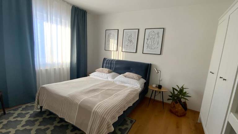 Die Ferienwohnung besteht aus zwei Schlafzimmern und einem Wohnzimmer. Zur Ausstattung gehören ein Flachbild-TV, eine gut ausgestattete Küche mit Kühlschrank und Geschirrspüler sowie ein Badezimmer mit Dusche. Handtücher und Bettwäsche werden bereitgestellt. Ein Balkon ist ebenfalls vorhanden.