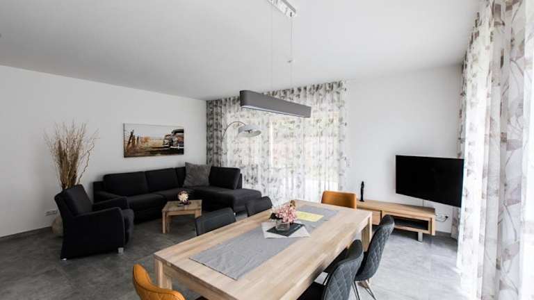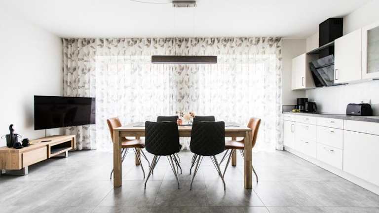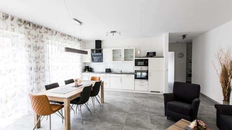 Die Ferienwohnung umfasst 2 Schlafzimmer und ist ausgestattet mit einem TV mit Satellitenkanälen. Die voll ausgestattete Küche beinhaltet einen Kühlschrank, Geschirrspüler, Waschmaschine, Ofen und Mikrowelle, was eine umfassende Selbstversorgung ermöglicht.