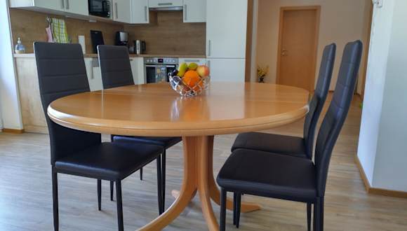 Das Apartment verfügt über eine voll ausgestattete Küche, so dass Sie Ihre eigenen Mahlzeiten zubereiten können. Alternativ können Sie auch den Grill im Garten nutzen. In der Umgebung finden Sie auch Restaurants und Cafés, in denen Sie lokale Spezialitäten genießen können.