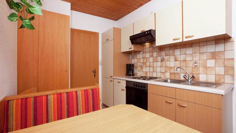 Die Ferienwohnung umfasst 2 Schlafzimmer, eine Küche mit Kühlschrank und Ofen sowie ein Badezimmer mit Dusche. Handtücher und Bettwäsche werden bereitgestellt.