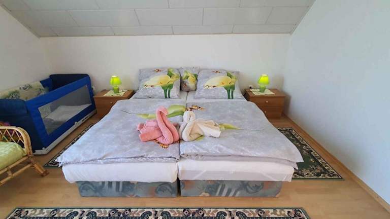 Das Apartment in Balatonszabadi 43404 bietet Ihnen eine komfortable Unterkunft in Balatonszabadi, in der Nähe von verschiedenen Attraktionen wie dem Bella Stables and Animal Park und dem Bebo Aquapark. Genießen Sie den Zugang zu einem Balkon, kostenlosem WLAN und kostenfreien Privatparkplätzen. Das Apartment verfügt über 3 Schlafzimmer und eine gut ausgestattete Küche. Entspannen Sie sich im Außenpool und erkunden Sie die Umgebung, darunter den Jókai Park und den Zamardi Adventure Park.