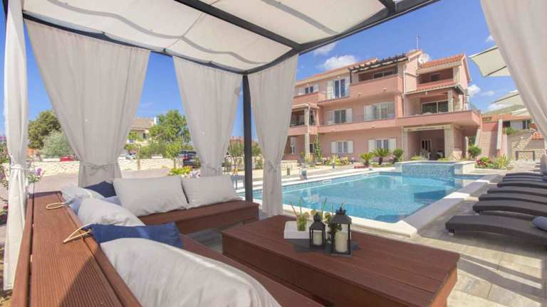 Die Unterkunft befindet sich in Grebaštica, nur 15 km vom Rathaus in Šibenik entfernt. Der Strand Galesnica ist 600 Meter entfernt. Weitere Sehenswürdigkeiten in der Nähe sind das Aquapark Solaris (12 km) und die Barone Festung (15 km). Der nächstgelegene Flughafen, Split, liegt 53 km von der Unterkunft entfernt.