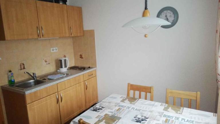 Das Apartment verfügt über zwei Schlafzimmer, ein Badezimmer mit Dusche und einen TV mit Satellitenkanälen. Darüber hinaus ist eine kompletten Küchenzeile vorhanden, die eine zweckmäßige Ausstattung bietet.