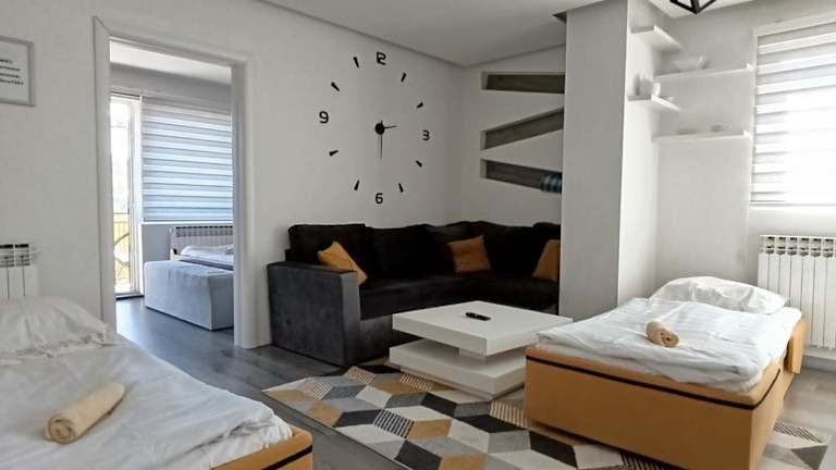 Verbringen Sie Ihren Aufenthalt im Apartment in nature in Sarajevo und genießen Sie die Vorzüge dieses Apartments, darunter ein Fitnesscenter, ein Garten und eine Bar. Das kostenfreie WLAN und die atemberaubende Aussicht auf die Berge machen Ihren Aufenthalt zu einem unvergesslichen Erlebnis. Das Apartment bietet auch kostenfreie Privatparkplätze und Zimmerservice. Lassen Sie sich von der Terrasse mit Stadtblick verzaubern und entspannen Sie in dem komfortablen Wohnzimmer. Das Apartment ist mit einer voll ausgestatteten Küche und einem modernen Badezimmer ausgestattet. Handtücher und Bettwäsche werden gestellt, damit Sie sich wie zu Hause fühlen können. Starten Sie den Tag mit einem leckeren Halal-Frühstück und lassen Sie sich von den mehrsprachigen Mitarbeitern an der Rezeption mit praktischen Informationen über die Umgebung versorgen. Der Kinderspielplatz und der Grill bieten zusätzliche Annehmlichkeiten für einen gelungenen Aufenthalt. Erkunden Sie die Umgebung mit dem Fahrrad und besuchen Sie Sehenswürdigkeiten wie die Lateinerbrücke und den Sebilj-Brunnen. Der internationale Flughafen Sarajevo ist nur 8 km entfernt und bietet einen kostenpflichtigen Flughafentransfer.