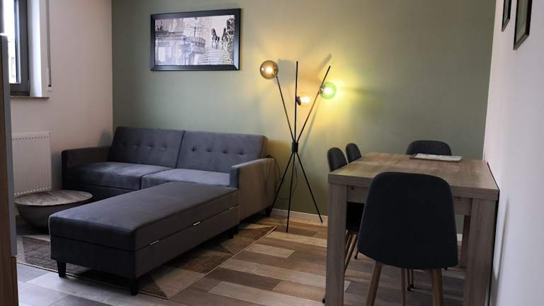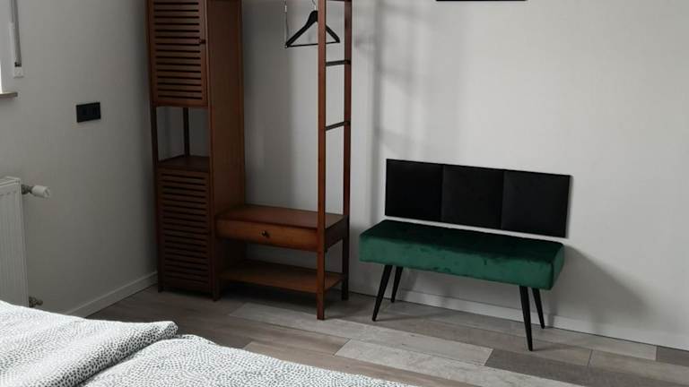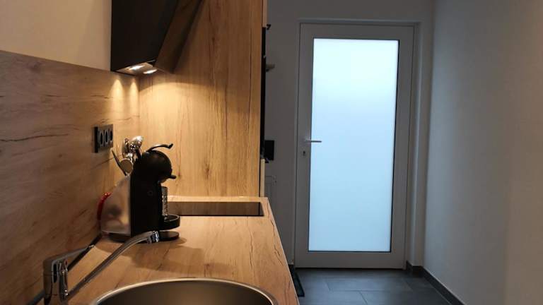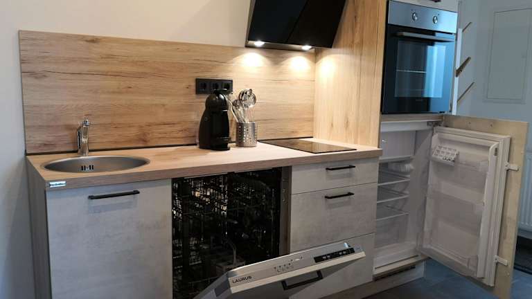 Die Ferienwohnung umfasst ein Schlafzimmer, ein Wohnzimmer und eine voll ausgestattete Küche mit Kühlschrank und Kaffeemaschine. Zudem gibt es ein Badezimmer mit Dusche und Haartrockner. Handtücher und Bettwäsche werden bereitgestellt.
