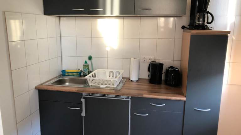 Die Ferienwohnung verfügt über ein Schlafzimmer, eine Küche mit Kühlschrank und Ofen, einen Flachbild-TV, einen Sitzbereich und ein Badezimmer mit Dusche. Handtücher und Bettwäsche werden bereitgestellt.