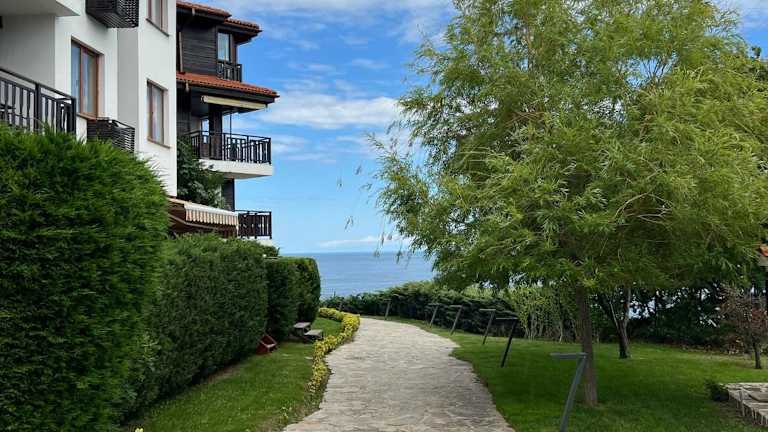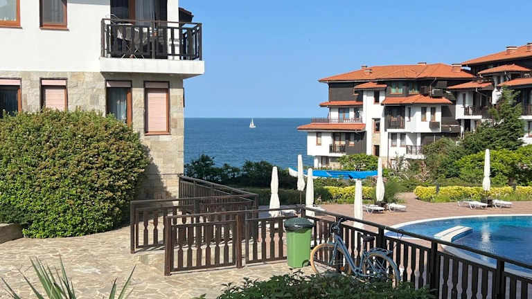 Das Saint Thomas Holiday Village Condo ist eine komfortable Unterkunft mit Meerblick in Sozopol. Es bietet eine Vielzahl von Annehmlichkeiten, darunter einen Außenpool, einen eigenen Garten und eine Bar. Die Unterkunft stellt WLAN und einen Privatparkplatz kostenfrei zur Verfügung. Der Check-in erfolgt zwischen 15:00 und 18:00 Uhr, während der Check-out von 08:00 bis 11:00 Uhr möglich ist. Zu beachten ist, dass Junggesellenabschiede oder ähnliche Feiern in der Unterkunft nicht erlaubt sind.