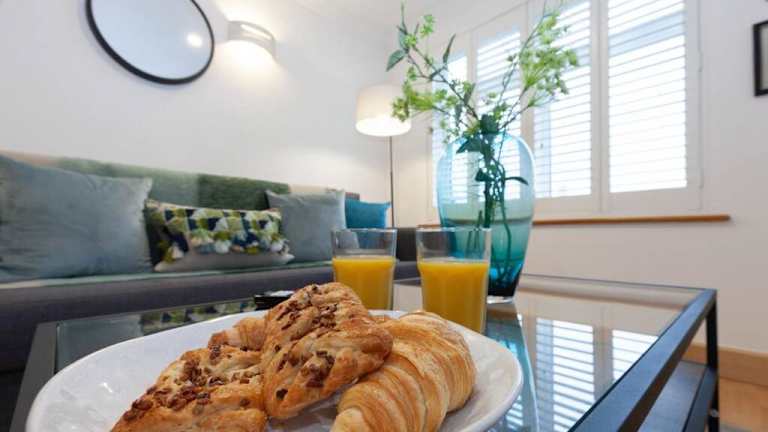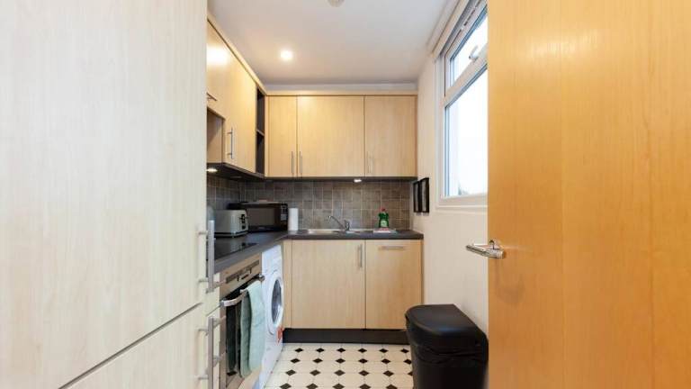 Das Apartment umfasst 1 Schlafzimmer, eine voll ausgestattete Küche mit Kühlschrank und Geschirrspüler, sowie einen Flachbild-TV und einen Sitzbereich. Das Badezimmer ist mit einer Dusche ausgestattet. Handtücher und Bettwäsche werden bereitgestellt.