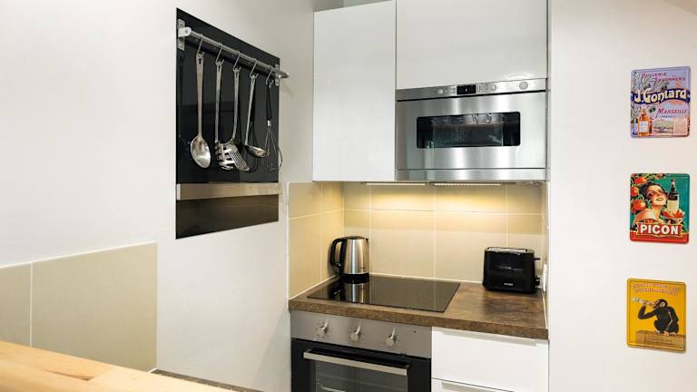 Da es sich um ein Apartment handelt, gibt es keine Verpflegung vor Ort. Sie können jedoch die Küchenzeile nutzen, um Ihre eigenen Mahlzeiten zuzubereiten. Alternativ gibt es in der Umgebung verschiedene Restaurants und Cafés, in denen Sie lokale Spezialitäten genießen können.
