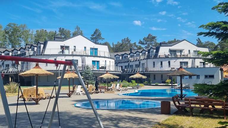 Das Apartment Julia - Baltic View Pobierowo polnische Ostsee ist eine ideale Unterkunft in Pobierowo, nur wenige Gehminuten vom Strand entfernt. Das Apartment bietet einen eigenen Pool, einen Tennisplatz und Grillmöglichkeiten. Genießen Sie den Poolblick vom Balkon aus und entspannen Sie sich im geräumigen Wohnzimmer. Die Küche ist komplett ausgestattet und das Apartment bietet ein komfortables Schlafzimmer sowie ein modernes Badezimmer. Parkplätze stehen kostenfrei zur Verfügung. Nutzen Sie den Kinderspielplatz, den Außenpool und die Terrasse. In der Umgebung können Sie wandern und verschiedene Aussichtspunkte besuchen. Der nächstgelegene Flughafen ist ca. 68 km entfernt.