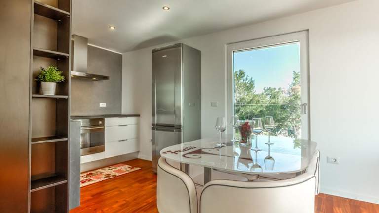 Die Apartments sind mit einer gut ausgestatteten Küche ausgestattet, die einen Kühlschrank, Geschirrspüler und Ofen umfasst, was die Selbstverpflegung erleichtert.