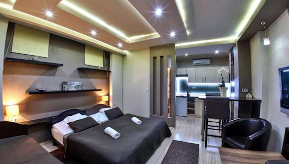 Das Hotel bietet klimatisierte Apartments und Zimmer, die allen Komfort bieten, den Sie für einen angenehmen Aufenthalt benötigen. Jedes Apartment verfügt über ein geräumiges Wohn- und Esszimmer sowie eine voll ausgestattete Küche, in der Sie Ihre eigenen Mahlzeiten zubereiten können. Alle Unterkünfte verfügen über Sat-TV und ein eigenes Bad. Einige der Unterkünfte sind zusätzlich mit einem CD- und DVD-Player ausgestattet.
