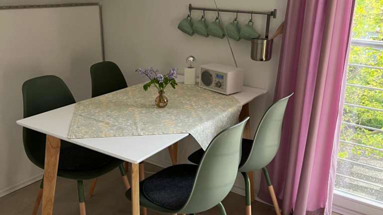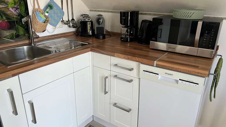 Da das Apartment eine voll ausgestattete Küchenzeile hat, können Sie sich Ihre Mahlzeiten selbst zubereiten. Alternativ können Sie auch den Grill im Garten nutzen. In der Umgebung gibt es auch einige Restaurants, in denen Sie essen gehen können.