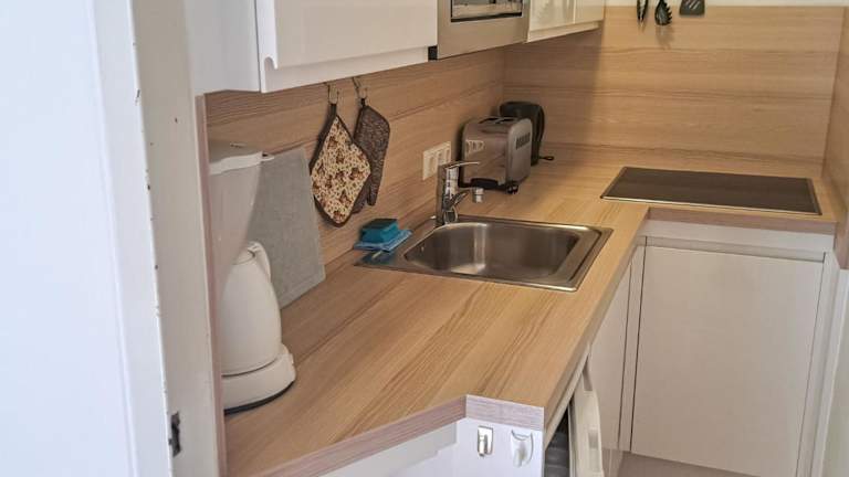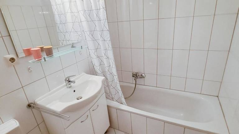 Die Ferienwohnung ist mit 1 Schlafzimmer ausgestattet und verfügt über eine Küchenzeile mit einem Kühlschrank und einem Geschirrspüler. Ein Badezimmer mit Dusche gehört ebenfalls zur Einrichtung.