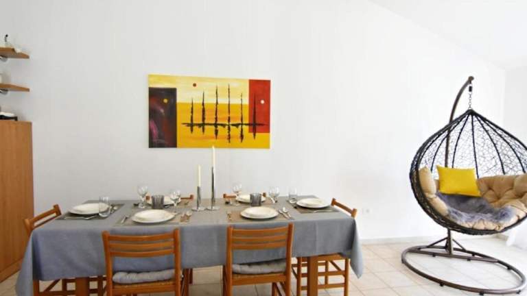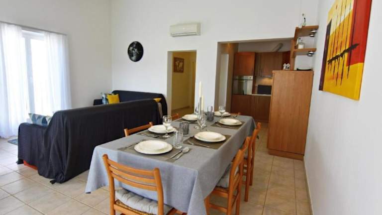 Die Wohnung verfügt über eine Küchenzeile, in der eine Kaffeemaschine bereitsteht. Die Zimmer sind klimatisiert und bieten komfortable Übernachtungsmöglichkeiten. Eine Waschmaschine ist ebenfalls in der Unterkunft vorhanden, um den Aufenthalt zu erleichtern.