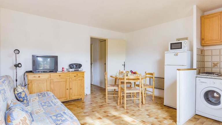 Das Apartment verfügt über zwei Schlafzimmer, ein Wohnzimmer, eine voll ausgestattete Küchenzeile inklusive Kühlschrank und Kaffeemaschine sowie ein Badezimmer mit Badewanne oder Dusche. Zur Ausstattung gehört ein Fernseher. Handtücher und Bettwäsche können gegen Gebühr gemietet oder selbst mitgebracht werden. Ein Babybett und ein zusätzliches Bett sind ebenfalls verfügbar.