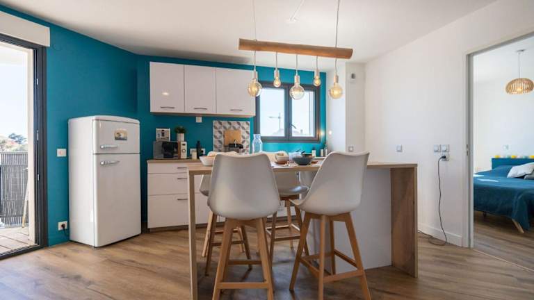 Das Apartment Le Rooftop by Interhome bietet ein komfortables Schlafzimmer, in dem Sie sich nach einem Tag am Strand entspannen können. Das geräumige Wohnzimmer lädt zum Verweilen ein und die voll ausgestattete Küche bietet alles, was Sie für die Zubereitung Ihrer Mahlzeiten benötigen, einschließlich Kühlschrank und Kaffeemaschine. Das Apartment verfügt auch über ein Badezimmer mit Dusche und einen Balkon, auf dem Sie den Blick auf die Umgebung genießen können. Ein TV ist ebenfalls vorhanden, um Ihnen Unterhaltung zu bieten.