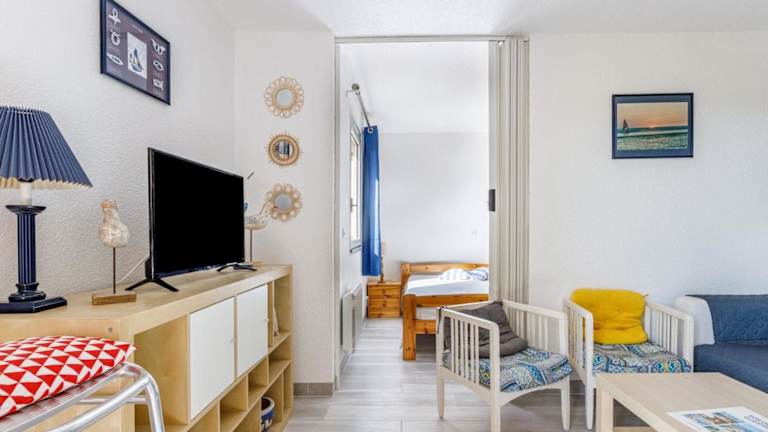 Die Ferienwohnung bietet zwei Schlafzimmer, einen TV und eine gut ausgestattete Küchenzeile mit Kühlschrank und Geschirrspüler. Darüber hinaus verfügt die Unterkunft über ein Badezimmer mit Dusche. Es besteht die Möglichkeit, Bettwäsche und Handtücher gegen Gebühr zu mieten oder eigene mitzubringen.