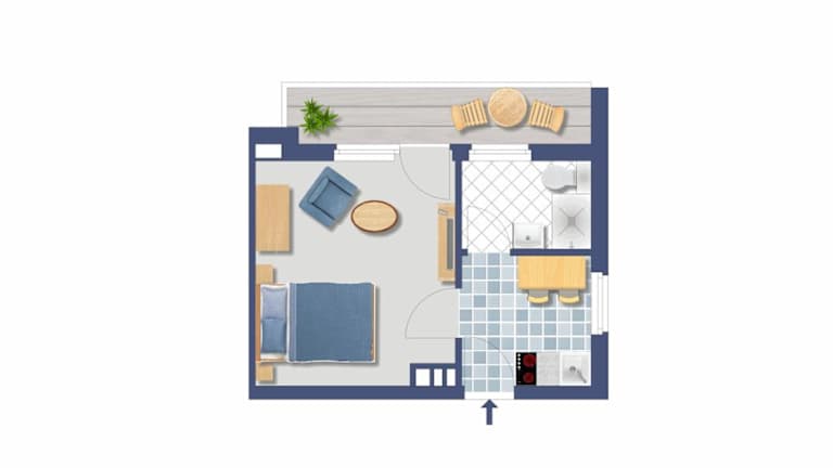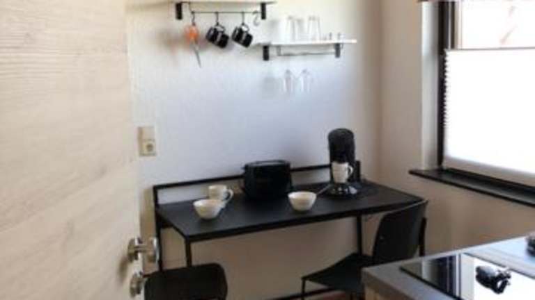 Die Ferienwohnung ist mit einer Küche ausgestattet, die über einen Kühlschrank, eine Herdplatte und eine Kaffeemaschine verfügt. Es sind jedoch keine spezifischen Angaben zur Verpflegung oder weiteren Essensangeboten vorhanden.