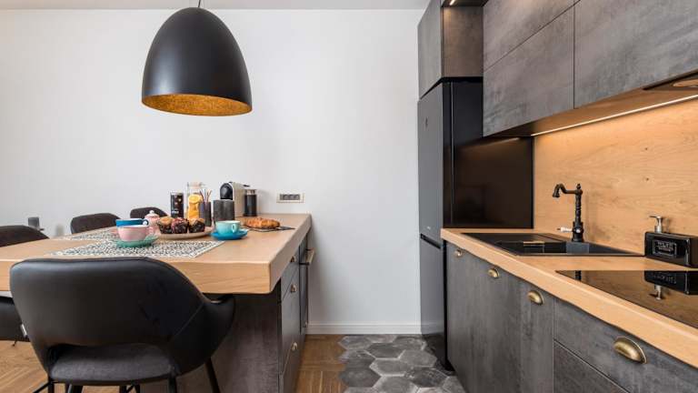 Die Ferienwohnung besteht aus einem Schlafzimmer, einem Wohnzimmer und einer voll ausgestatteten Küche, die mit einem Kühlschrank und einer Kaffeemaschine ausgestattet ist. Es gibt ein Badezimmer mit einer Dusche und kostenlosen Pflegeprodukten. Handtücher und Bettwäsche werden bereitgestellt. Die Unterkunft ist klimatisiert.