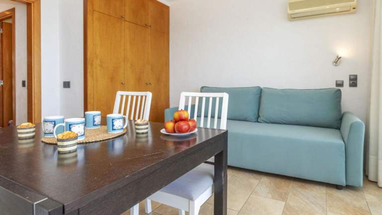 Die Wohnung verfügt über ein Schlafzimmer, ein Wohnzimmer und eine voll ausgestattete Küche, die mit einem Kühlschrank und einer Kaffeemaschine ausgestattet ist. Das Badezimmer bietet eine Dusche und einen Haartrockner. Zur Unterhaltung steht ein Fernseher mit Satellitenkanälen zur Verfügung.