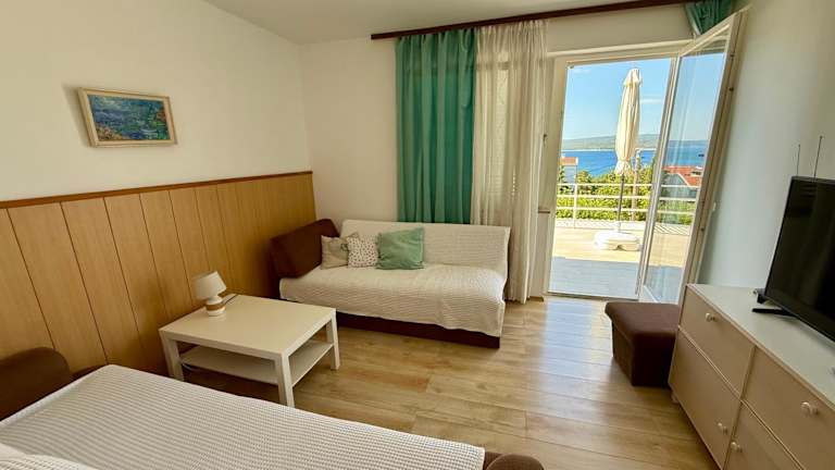 Das klimatisierte Apartment Marija bietet Platz für bis zu 4 Personen und verfügt über 2 gemütliche Schlafzimmer, ein komfortables Wohnzimmer und eine voll ausgestattete Küche. Hier finden Sie alles, was Sie für einen angenehmen Aufenthalt benötigen, einschließlich eines Kühlschranks, einer Kaffeemaschine und eines Wasserkochers. Das Apartment bietet auch ein Badezimmer mit einer Badewanne und einem Haartrockner. Handtücher und Bettwäsche werden gestellt, um Ihren Aufenthalt so bequem wie möglich zu gestalten.