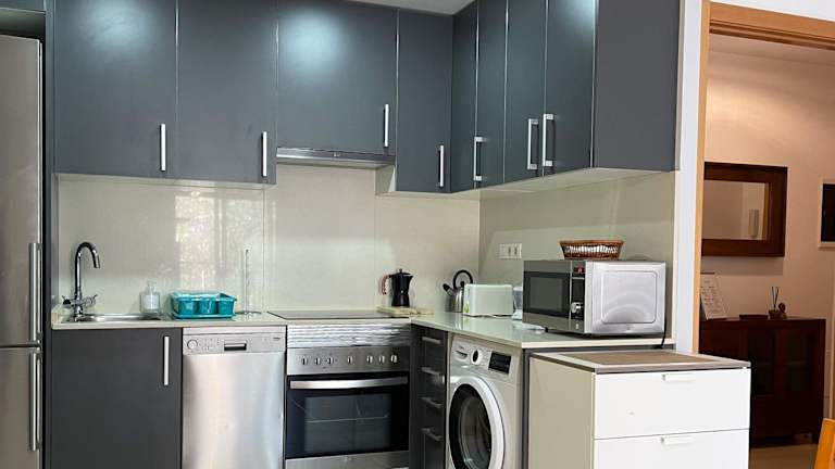 Die Ferienwohnung umfasst zwei Schlafzimmer, ein Wohnzimmer, eine voll ausgestattete Küche mit Kühlschrank und Kaffeemaschine sowie ein Badezimmer mit Dusche und kostenlosen Pflegeprodukten. Handtücher und Bettwäsche sind im Preis inbegriffen und die Reinigung erfolgt nach den Richtlinien der örtlichen Behörden.