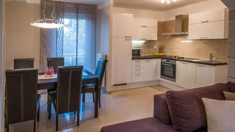 Die Villa Marina liegt in der malerischen Stadt Malinska und ist nur einen kurzen Spaziergang von einem schönen Strand entfernt. Die Küstenpromenade ist ebenfalls in unmittelbarer Nähe und bietet eine Auswahl an Bars und Restaurants, die köstliche Fischgerichte und Meeresfrüchte aus der Adria servieren. In der Umgebung gibt es auch ein Lebensmittelgeschäft, das nur wenige Gehminuten entfernt ist. Wenn Sie die Umgebung erkunden möchten, können Sie einen Ausflug in den 15 km entfernten Ort Vrbnik unternehmen und an Weinverkostungen teilnehmen. Der Busbahnhof, der Verbindungen zu anderen Teilen der Insel Krk und zur historischen Stadt Rijeka bietet, ist ebenfalls leicht zu erreichen. Der Flughafen Rijeka ist nur 12 km entfernt.