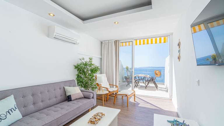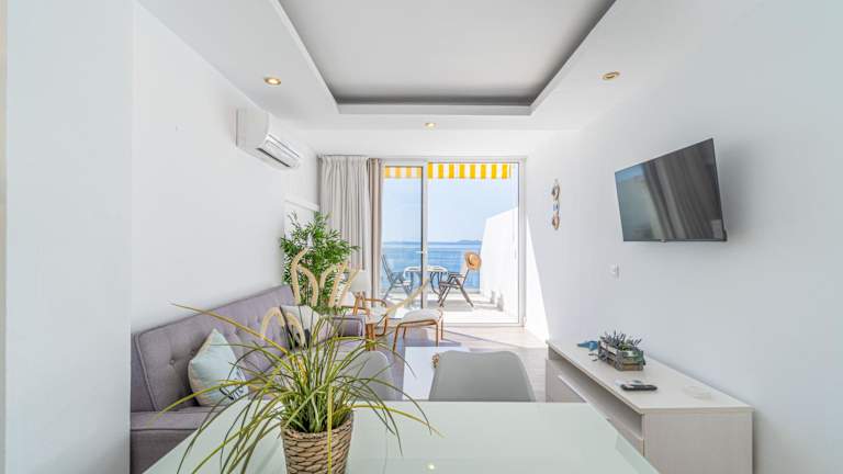 Das klimatisierte Apartment Meda Chica verfügt über ein komfortables Schlafzimmer, ein geräumiges Wohnzimmer und eine voll ausgestattete Küche mit Kühlschrank und Kaffeemaschine. Das Apartment bietet zudem ein Badezimmer mit Dusche und Haartrockner. Handtücher und Bettwäsche können gegen Aufpreis zur Verfügung gestellt werden. Vom Balkon aus können Sie den atemberaubenden Meerblick genießen und auf der Terrasse entspannen.