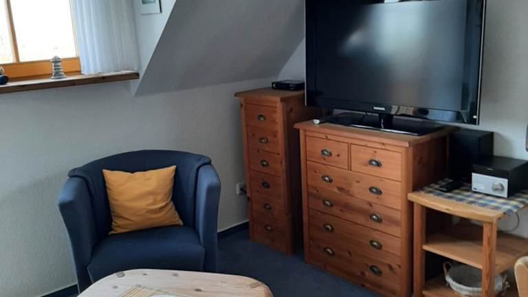 Die Ferienwohnung umfasst 1 Schlafzimmer, ein Wohnzimmer, ein Badezimmer mit Dusche, eine gut ausgestattete Küche mit Kühlschrank und Geschirrspüler sowie einen Flachbild-TV. Handtücher und Bettwäsche können gegen eine Gebühr bereitgestellt werden.