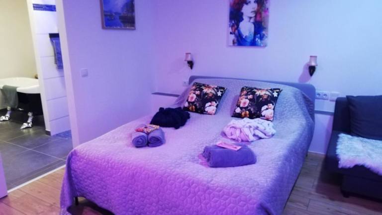 Die Ferienwohnung verfügt über ein Schlafzimmer, eine Küche mit Kühlschrank und Geschirrspüler, einen Flachbild-TV sowie einen Sitzbereich. Das Badezimmer ist mit einer Dusche ausgestattet. Handtücher und Bettwäsche werden bereitgestellt. Die Unterkunft bietet zudem Familienzimmer und einen kostenlosen Privatparkplatz.