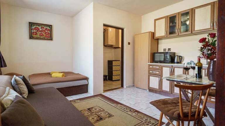 Im Apartment Melita haben Sie die Möglichkeit, Ihre eigenen Mahlzeiten zuzubereiten, da es über eine gut ausgestattete Küche verfügt. Alternativ können Sie auch in einem der nahegelegenen Restaurants speisen und die lokale Küche genießen. Banska Stiavnica bietet eine Vielzahl von Restaurants und Cafés, in denen Sie traditionelle Gerichte und internationale Spezialitäten probieren können.