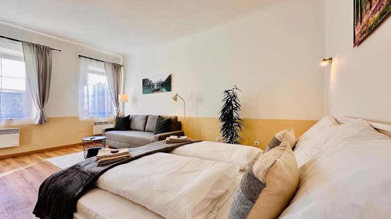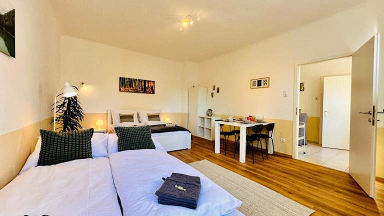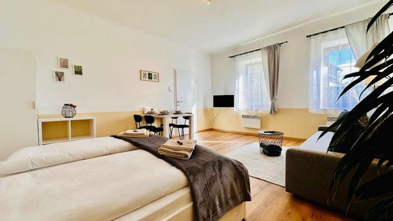 Die Ferienwohnung verfügt über 1 Schlafzimmer, eine Küchenzeile mit Kühlschrank und Mikrowelle sowie ein Badezimmer mit Dusche und kostenlosen Pflegeprodukten. In der Unterkunft sind Handtücher und Bettwäsche verfügbar.