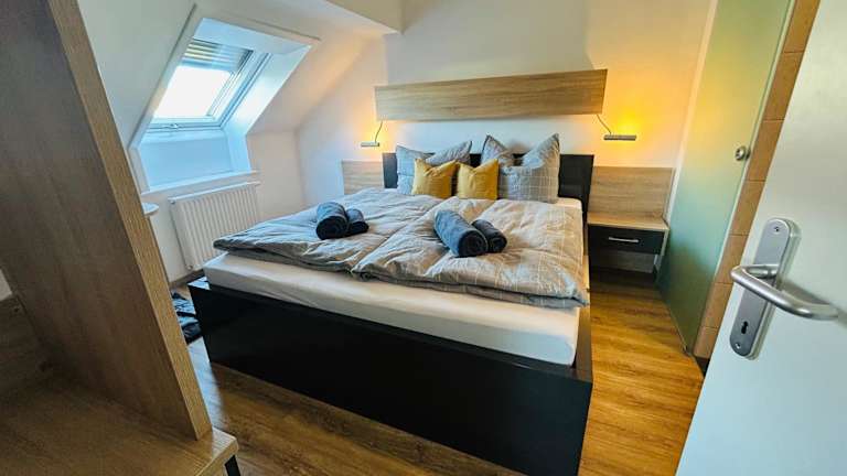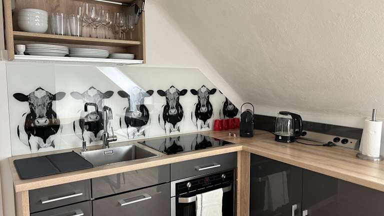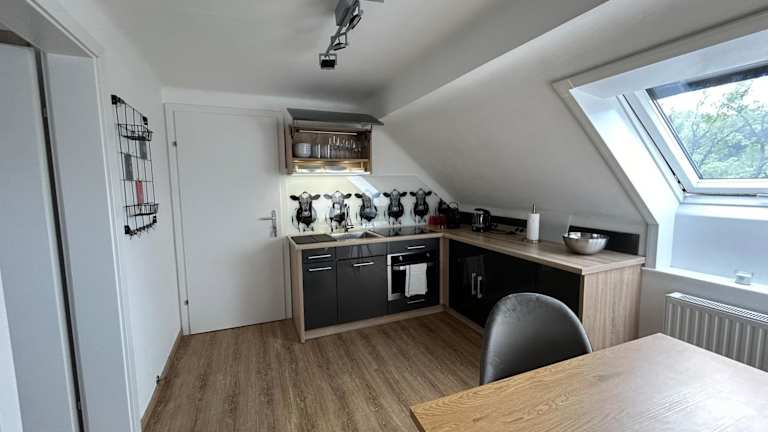 Die Ferienwohnung besteht aus einem Schlafzimmer und einem Wohnzimmer. Eine voll ausgestattete Küche mit Kühlschrank und Kaffeemaschine ist vorhanden. Das Badezimmer ist mit einer Dusche und einem Haartrockner ausgestattet. Handtücher und Bettwäsche werden ebenfalls bereitgestellt.