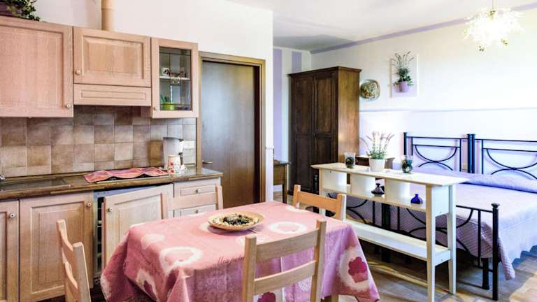 Das Apartment im Locazione Turistica Monolocale - Ranch Hotel by Interhome bietet ein geräumiges Wohnzimmer und eine voll ausgestattete Küche mit einem Kühlschrank. Hier können Sie Ihre eigenen Mahlzeiten zubereiten und sich wie zu Hause fühlen. Das Apartment verfügt auch über einen TV für Ihre Unterhaltung.
