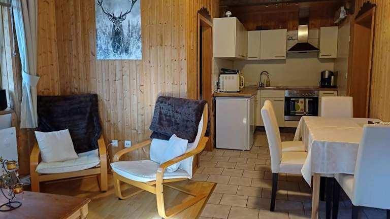 Die Ferienwohnung umfasst zwei Schlafzimmer, ein Badezimmer, Bettwäsche und Handtücher. Zur Ausstattung gehören ein TV mit Satellitenkanälen und eine voll ausgestattete Küche.