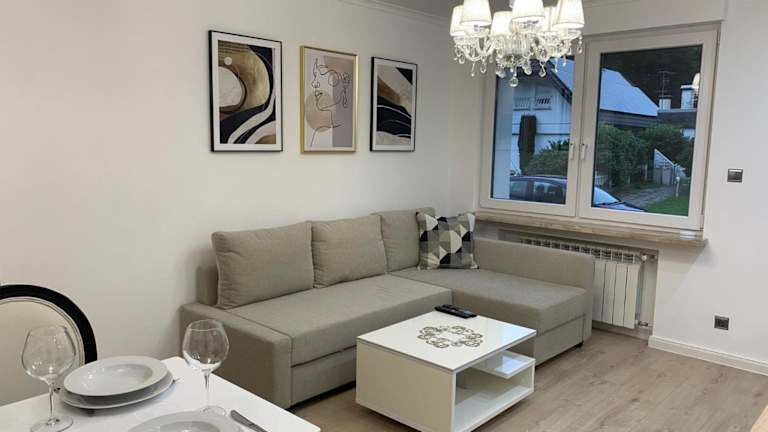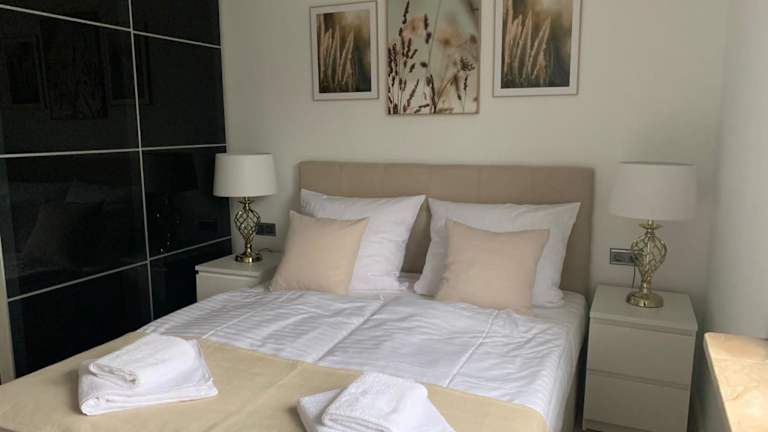 Die Wohnung umfasst ein Schlafzimmer, ein Wohnzimmer, sowie ein Badezimmer mit Dusche und kostenlosen Pflegeprodukten. Handtücher und Bettwäsche werden bereitgestellt.