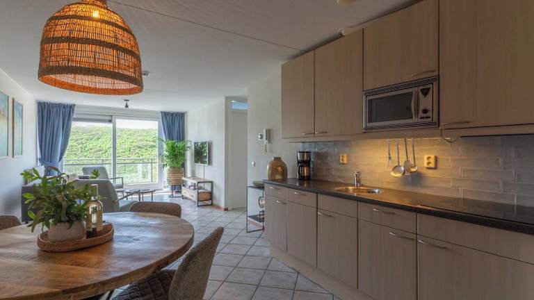 Das Wijde Blick appartement 310 - Callantsoog ist eine ideale Unterkunft für einen Strandurlaub in Callantsoog. Mit einer günstigen Lage in der Nähe des Strandes, bietet das Apartment einen Balkon mit Blick auf das Meer, kostenfreie Privatparkplätze und WLAN. Das geräumige Apartment verfügt über eine gut ausgestattete Küche, ein gemütliches Wohnzimmer, zwei Schlafzimmer und ein modernes Badezimmer. In der Umgebung gibt es verschiedene Sehenswürdigkeiten wie den Leuchtturm J.C.J. Van Speijk und den Bahnhof Schagen, die Sie leicht erreichen können. Der Flughafen Amsterdam Schiphol ist ebenfalls gut erreichbar.