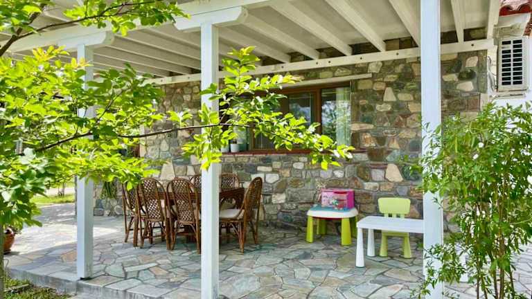 Die Unterkunft befindet sich in einer ruhigen Umgebung, etwa 2 km vom Strand Valti entfernt und nur 300 m vom Strand Paralia Sykia. Das Ferienhaus bietet Meerblick und ist von einem Garten umgeben, der zur Erholung einlädt. Der nächstgelegene Flughafen ist Thessaloniki, der sich 134 km entfernt befindet.