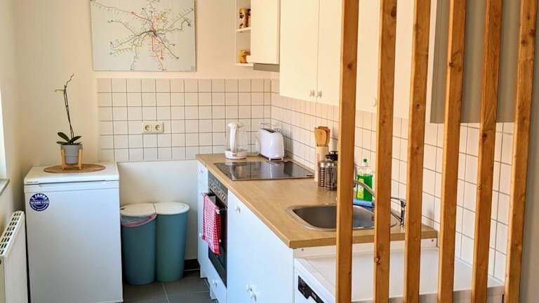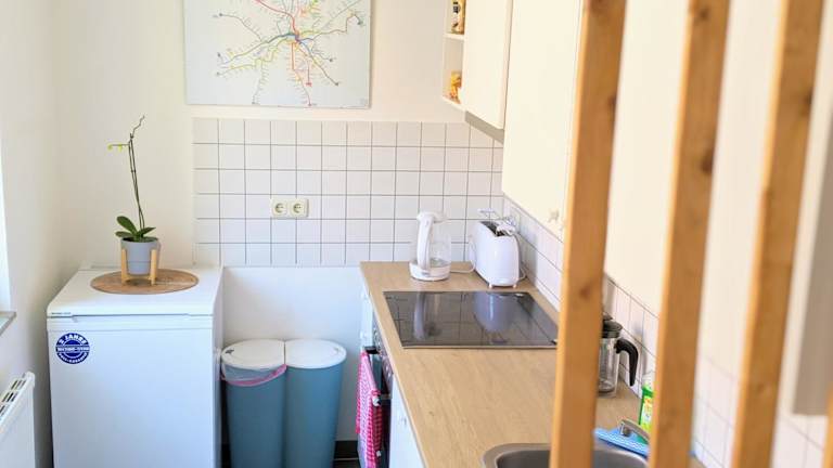 Die Ferienwohnung verfügt über 1 Schlafzimmer, ein Wohnzimmer, eine voll ausgestattete Küche mit Kühlschrank und Kaffeemaschine sowie ein Badezimmer mit Badewanne oder Dusche und Haartrockner. Handtücher und Bettwäsche sind vorhanden.