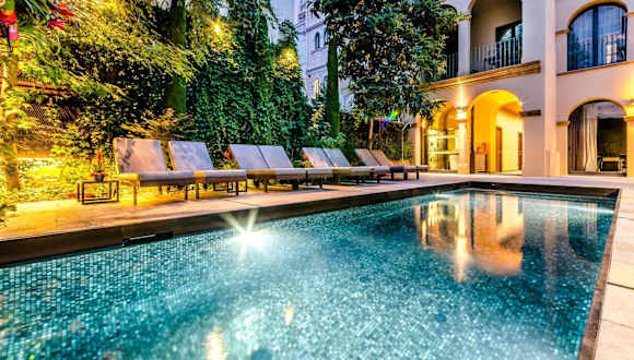 Das familiengeführte Hotel Nord 1901 in Girona bietet seinen Gästen eine ideale Lage, nur einen kurzen Spaziergang von der Kathedrale entfernt. Die Zimmer sind elegant eingerichtet und verfügen über Annehmlichkeiten wie Flachbild-TVs und kostenfreies WLAN. Entspannen Sie auf der Gartenterrasse mit kleinem Pool und lassen Sie sich von den Mitarbeitern bei der Organisation von Zimmerservice oder Massagen helfen. Die Umgebung bietet eine Vielzahl von Restaurants und Cafés sowie die malerischen bunten Häuser am Fluss Onyar. Ein Frühstücksbuffet mit Blick auf den Garten rundet das Angebot ab.