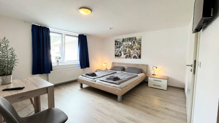 Die Unterkunft befindet sich in Quiddelbach, in der Nähe des Nürburgrings, 34 km von Abtei Maria Laach und 44 km von Reichsburg Cochem entfernt. Der nächstgelegene Flughafen, Köln/Bonn, ist 73 km entfernt.