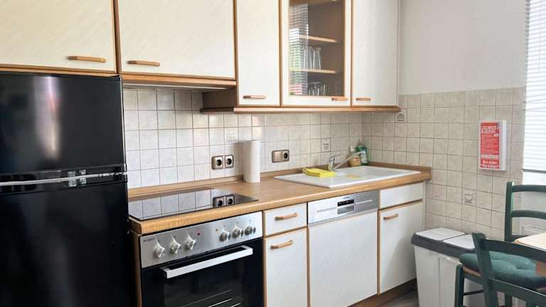 Die Wohnung verfügt über 5 Schlafzimmer, 3 Badezimmer mit Dusche sowie eine gut ausgestattete Küche, die unter anderem einen Kühlschrank und Geschirrspüler umfasst. Ein TV mit Satellitenkanälen ist ebenfalls vorhanden.
