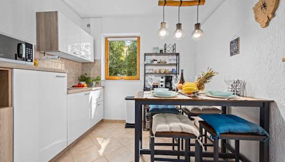 Das Apartment O'live Rabac Istra bietet eine komfortable Unterkunft mit Meerblick und umfasst eine Terrasse sowie einen Balkon. Die Unterkunft ist klimatisiert und besteht aus zwei Schlafzimmern, einem Wohnzimmer, einer voll ausgestatteten Küche und einem Badezimmer.