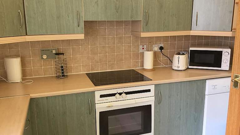 Das Apartment verfügt über ein Schlafzimmer und ist mit einem TV ausgestattet. Die gut ausgestattete Küche beinhaltet einen Kühlschrank und einen Ofen. Das Badezimmer bietet sowohl eine Badewanne als auch eine Dusche.