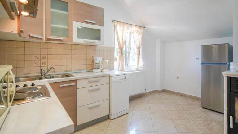 Die Küche der Unterkunft ist mit einem Kühlschrank und einer Kaffeemaschine ausgestattet, was die Selbstversorgung ermöglicht.